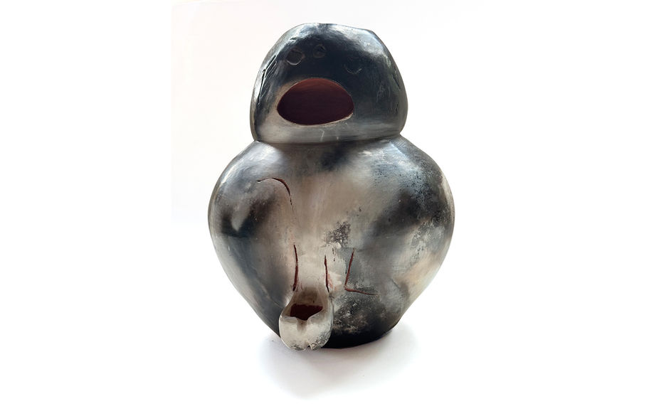 The Neolithic bird goddess is associated with water, the primordial element that is able to produce life, stimulate its growth, and nurture it with damp warmth. As I concentrate my thought on this ancient bird goddess, on her fluid energy and damp warmth born from the primordial waters, the water in the clay manifests her forms. It is her form that speaks her language and directs my hand to make marks. Like the Neolithic rites that gave form to clay and scratched markings, my marks are always emerging, unique and evolving, not scripted by a system of fixed symbols. I don’t expect to translate these marks into alphabetic statements, but to experience this language in my body as an energetic force from which this entire universe is created.